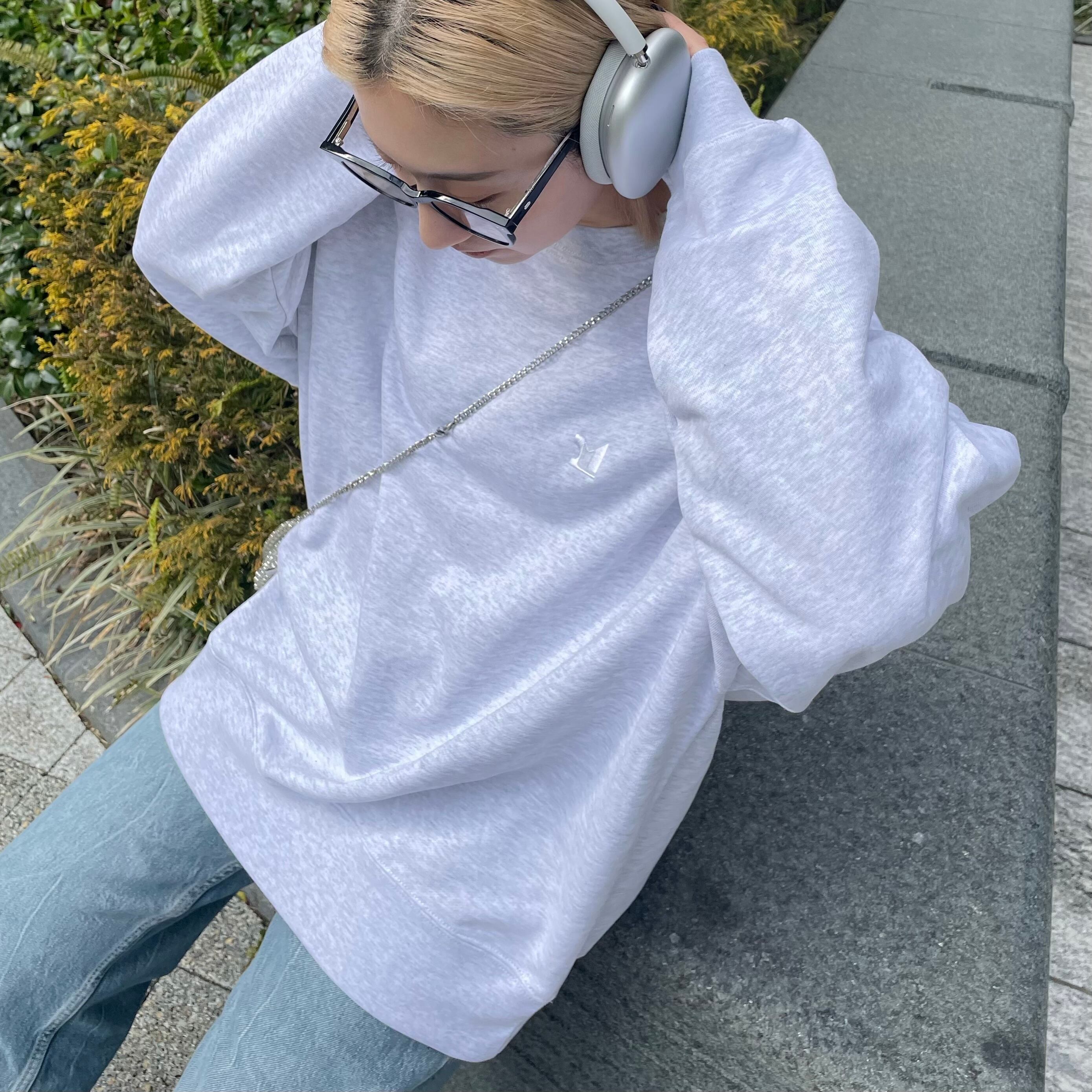 LE:MUMENTロゴのポイント刺繍を施したオーバーサイズスウェット。