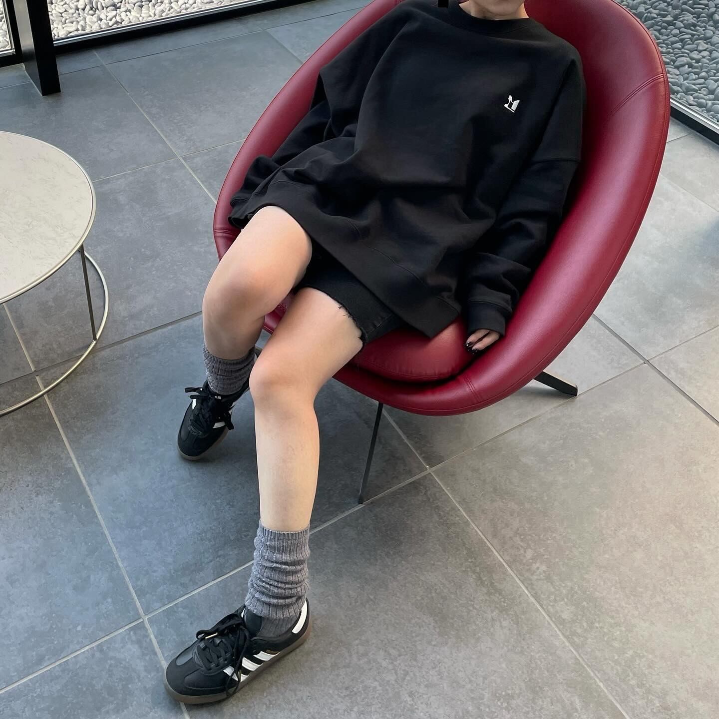 LE:MUMENTロゴのポイント刺繍を施したオーバーサイズスウェット。